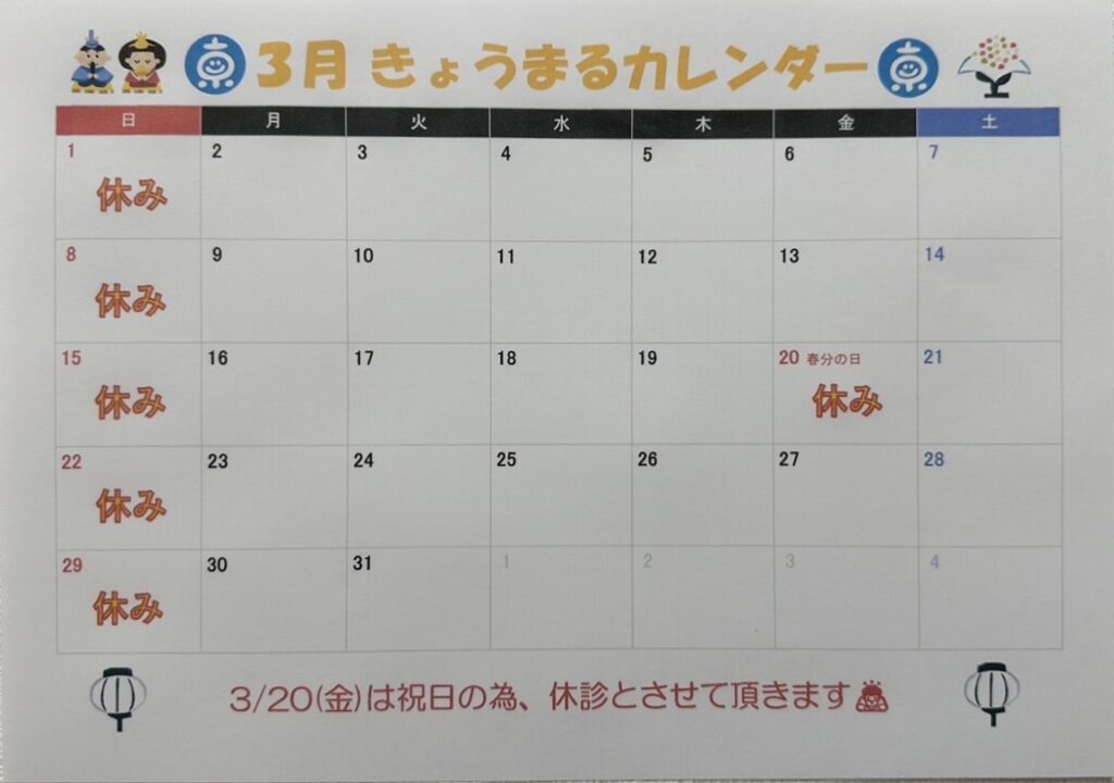 お知らせ ☃️2月・3月のお知らせ🎎 2026.02.19 Tweet Share Hatena Pocket RSS feedly Pin it 記事のタイトルとURLをコピーする 寒くなったり暖かくなったりで体に堪えますね😣 こういう時は体を痛めやすいので、いつも以上にお気を付けください⚠ 大変遅くなりましたが2月にお知らせです。 23日(月)は祝日の為、休診となります。 3月のお知らせはこちらです🎎 20日(金)は祝日の為、休診となります。 花粉が飛び始め、ストレスを感じやすいこの時期🌳 ヘッドケアなどでリフレッシュしてみてはいかがでしょうか💆🏻♂️💆🏻♀️ ご予約優先となっておりますので、お電話もしくはLINEにご連絡くださいませ🤗 岩見 京 あだ名 きょうちゃん・がんちゃん 出身地 横浜市保土ヶ谷区 趣味 ソフトボール・野球観戦 ひとこと きょうまるで体も心も笑顔になりましょう! https://kyomaru-s.jp Tweet Share Hatena Pocket RSS feedly Pin it 🎍1月のお知らせ🌅 前の記事